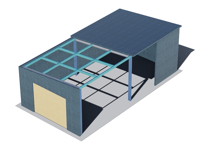Сборный гараж серии EUROBOX односкатный на болтовых соединениях в теплом исполнении.